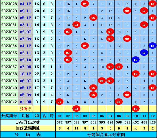 前区重号分析:上期前区奖号没有开出重号,重号在前7期开奖中出现2期,开出比例为29%,共出现2个重号,本期注意重号回补,预计出现1个,关注重号02。