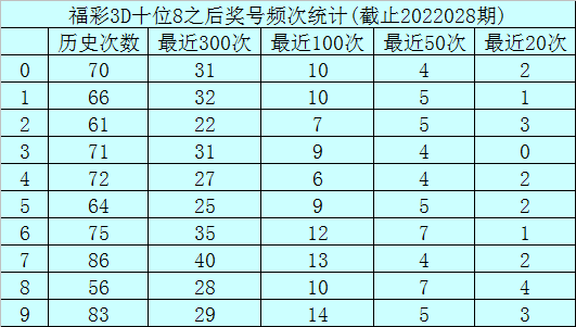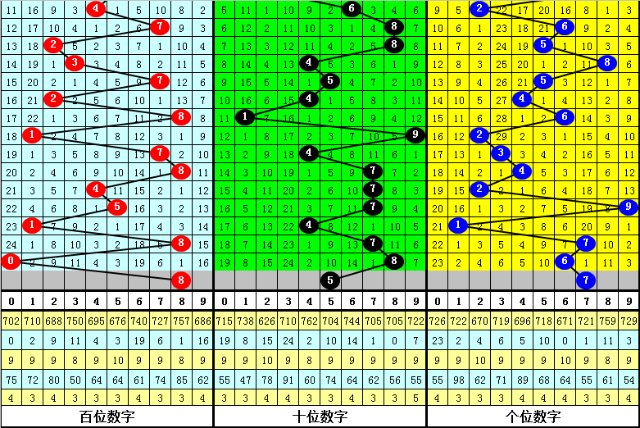 百位杀号:上期百位开出号码0,历史上百位号码0已开出702次了,最近100次百位号码0出现之后,其下期各号码频次分别为:号码8出现15次,1出现14次,4出现13次,0出现12次,6、9出现10次,7出现9次,2、5出现7次,3出现3次。