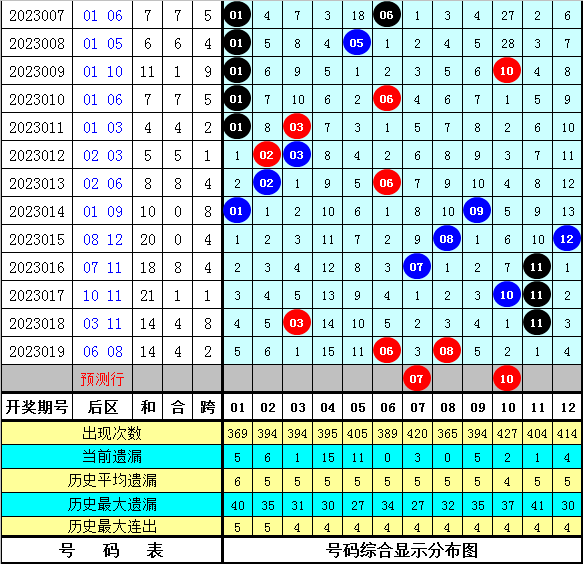 后区奖号分析:最近10期后区奖号012路个数比为8:5:7,其中1路号码表现最冷,本期防1路号码回补,看好后区在04、05、07、08、10中出号。