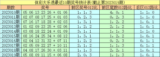 体彩大乐透第2023020期前区尾数012路分析: