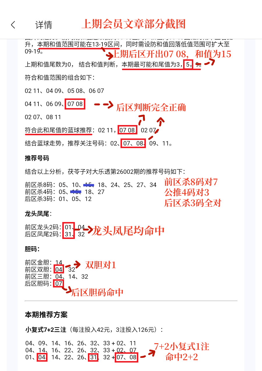 会员文章中双胆对1,蓝球胆码命中,龙头凤尾均命中。7+2小复式1注命中2+2,本期再接再厉!