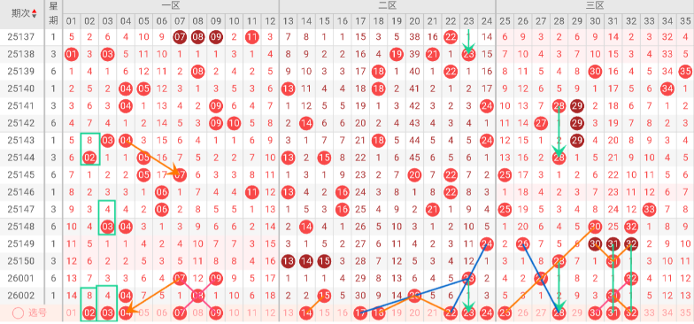 接下来,我们根据近期的开奖情况,对大乐透26003期的开奖号码进行分析: