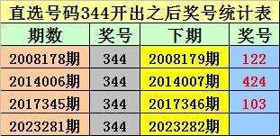 排列三直选344出现之后下期奖号分别为:122-424-103。