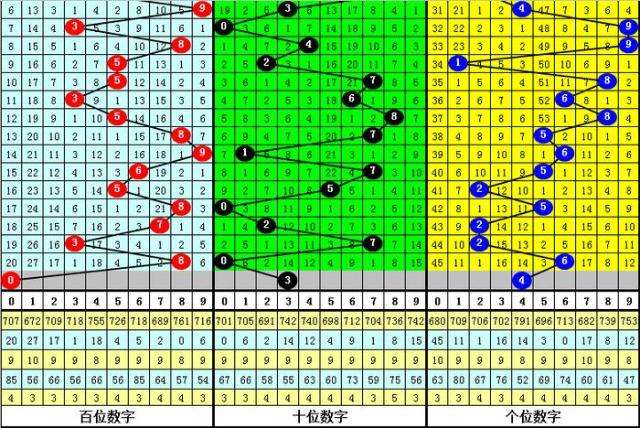 3、在以上0-9号码频次中,号码大小比为40:53,012路比为32:30:31,本期预计百位开出0路号码,参考号码0。