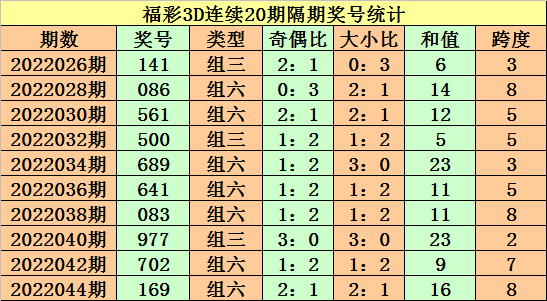 上期回顾:福彩3D第2022045期奖号:822。组三、大小小、偶偶偶。