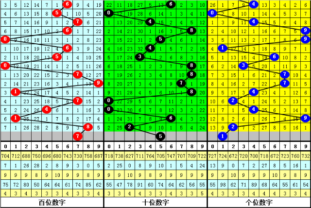 百位:2022041期-2022045期出号:17418,振幅为7点,分布比较分散,本期看好百位走小,关注7。