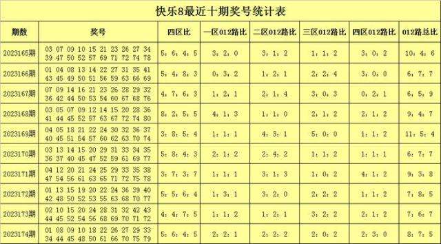 福彩快乐8第2023174期开奖回顾:01 08 09 10 18 22 26 27 29 33 34 44 45 48 50 61 66 70 75 79,其中奖号四区比为5:6:4:5,012路比为8:7:5,和值为755,跨度为78。