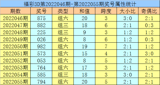 开奖回顾:福彩3D第2022055期开出奖号794。奖号形态为组六,奇偶比为2:1,012路比为1:2:0,大小比为2:1,和值为20,跨度为5。