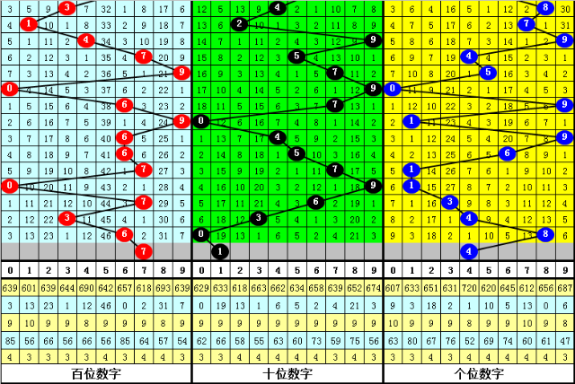 3。在以上9期奖号中,号码012路比分别开出1:1:1、2:1:0、0:1:2、0:1:2、1:0:2、2:1:0、1:2:0、0:3:0、2:0:1,012路出现个数比为9:10:8,本期预计开出012路比0:3:0。