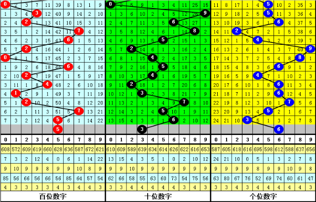 其中,百位奇偶比为1:2,大小比为1:2,本期百位一码参考5。