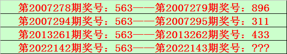 排列三第2022142期开出奖号563,该号码直选类型历史上出现了4次,前3次开出之后期下期奖号为:896、311、433,见下表: