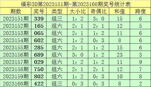 上期回顾:福彩3D第2023160期奖号:422。