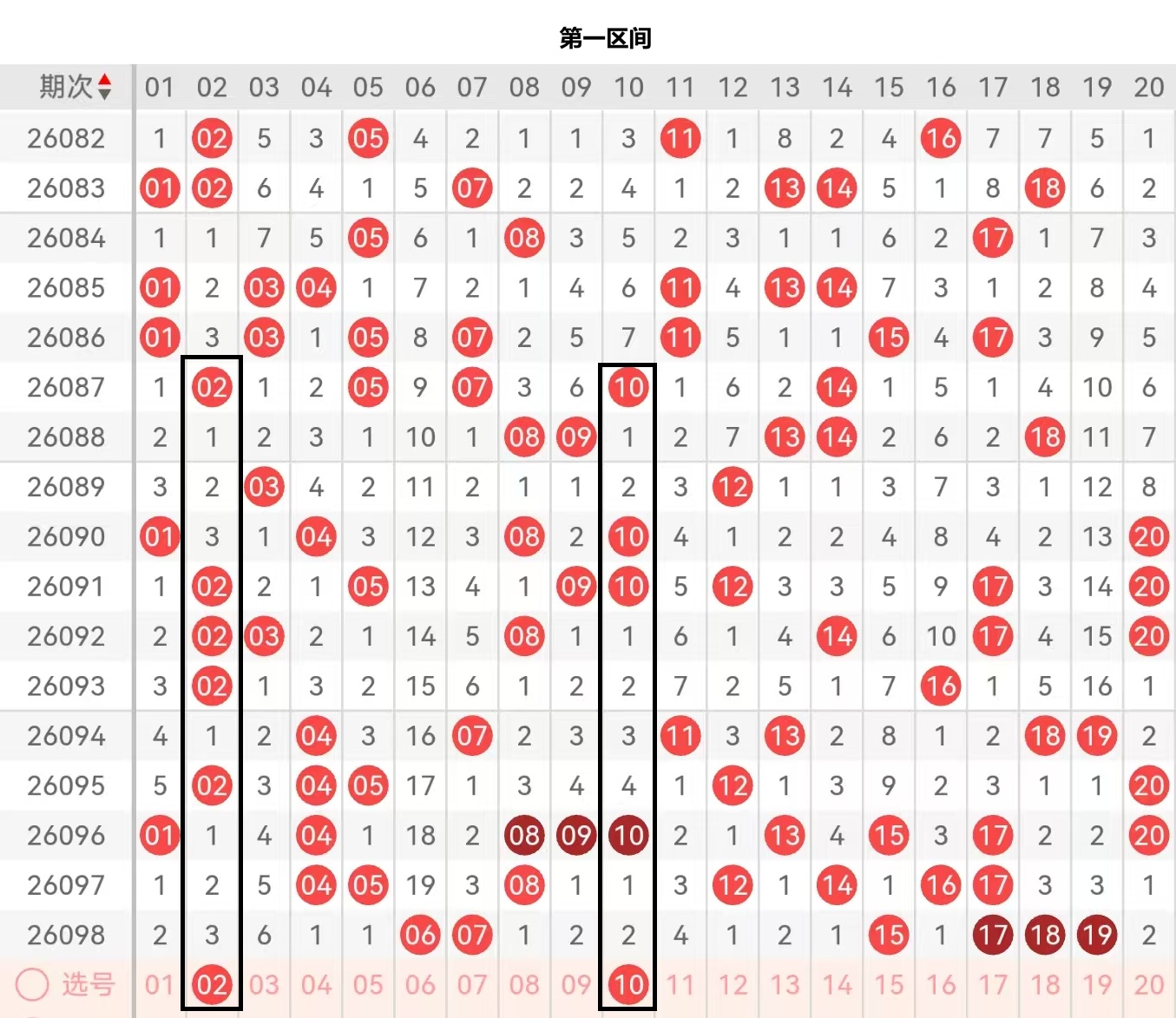 上期第一区间开出(06 07 15 17 18 19)六个号码球。上期一区间六个号码球在一区间落位,区间走出热态六码出号区间走出温态趋势,一区间前端龙头06-07姊妹对号码球落位,那么通过分析研判从区间的落位趋势去看一区间整体区间落位号码分布在区间的前后两端。那么本期我们在一区间进行研判时一定要考虑后端号码的回补落位,通过区间的走势特点去研判本期的走势,后端17-18-19三连号码球开出。我们要注意区间冷态号码球的回补开出,那么本期我们要注意区间的走势端号码趋势转换的可能,因此我们要谨慎操作防止区间走出回补态更为合理。