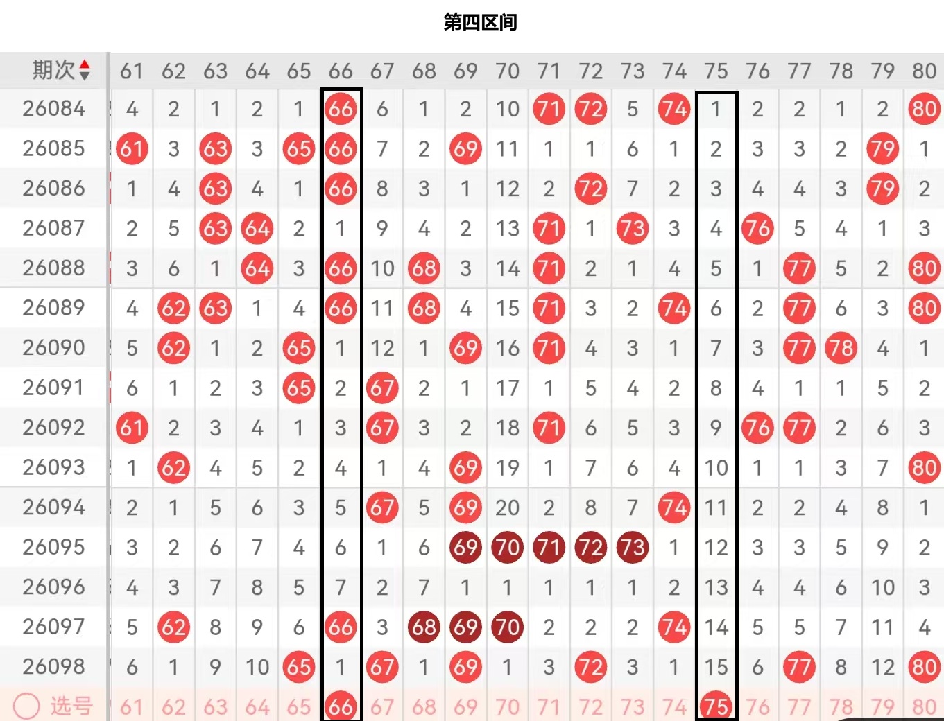 上期第四区间开出了(65 67 69 72 77 80)六个号码球。第四区间上期断区落位,区间落位数量上期开出热态六码落位,那么区间在大盘震荡走势下上期区间继续出现下行趋势,那么本期我们在四区间进行操作时一定要注意区间的“区间上升”特别是我们在对四区号码操作时一定要注意观察区间的走势趋势与遗漏号码球的对应落号落位,那么我们本期一定要注意温态号码和前期遗漏号码的形态更为合理,那么我们需要及时调整区间的做号方式更为稳妥。那么本期我们在四区间研判时重点考虑区间的热态回补号码更为妥当。