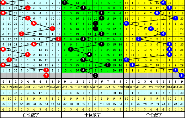其中,号码0-9开出次数分别为:号码0开出4次、1开出3次、2开出1次、3开出4次、4开出3次、5开出4次、6开出3次、7开出5次、8开出2次、9开出1次。