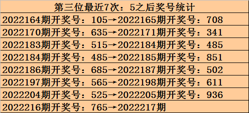 第三位冷码判断:上期开出奖号5,遗漏值为11期,目前该位最冷号码为4,遗漏值为44期,本期继续排除。