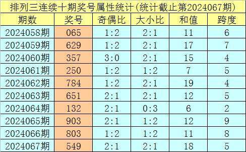 上期回顾:排列三第2024067期奖号:549。类型:组六,奇偶形态:奇偶奇,大小形态:大小大,和值:18,跨度:5。