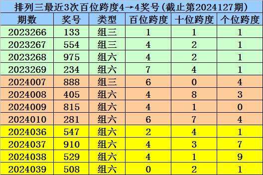 第2024036-第2024038期奖号:547、910、529,其下期奖号为:508,首位号码跨度为0;