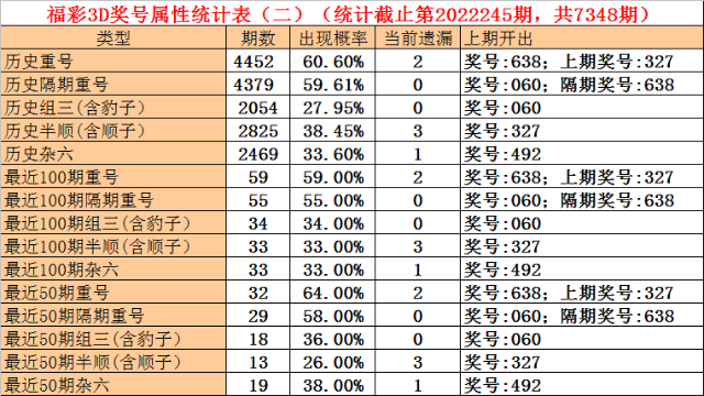 上期奖号:福利彩票3D第2022245期开出奖号060。