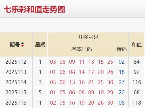 近五期七乐彩开奖号码和值依次为84→92→116→68→118。周期和值均值为96。周期和值振幅为50,周期和值修正振幅为35。基于动态平衡干预以及波动趋势衡量,本期开奖和值推测区间为61-131。基于风险对冲策略,本期开奖和值区间缩水为67-130。