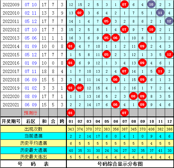 大乐透历年同期第022期后区尾数奇偶比为13:17,尾数大小比为7:23,本期后区大范围参考01、04、07、10、11。