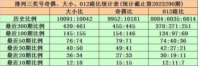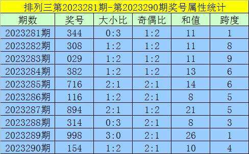 上期回顾:排列三第2023290期出现奖号154。开出组六,奇偶比2:1,012路比0:2:1,大小比1:2,和值10,跨度4。