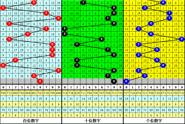 百位分析:最近50期表现较热的号码有:5、7、8出现7次;表现较冷的号码有:3出现2次,1、2、4、6出现4次。出号奇偶比为26:24,012路比为17:15:18。本期该位绝杀两码2、4,参考号码0、6、8,精选一码6。