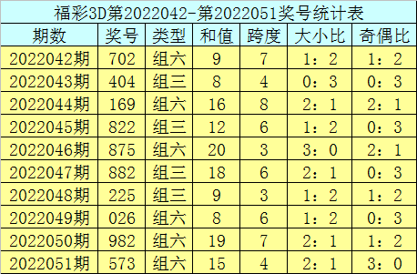 开奖回顾:福彩3D第2022051期奖号为573,奖号012路比为1:1:1,奇偶比为3:0,和值为15。