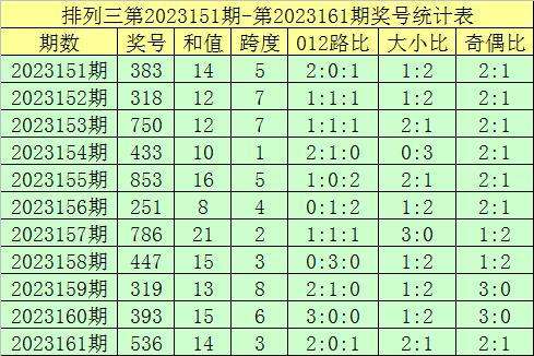 开奖回顾:排列三第2023161期奖号开出:536,组选类型:组六,大小比为2:1,奇偶比为2:1,和值为14,跨度为3。