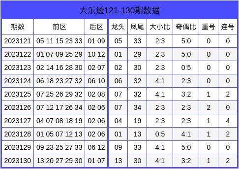当期前区号码大小比为4:1,三区比为0:2:3,奇偶比为3:2,重号开出27,连号开出:29,30。后区开出小大、奇奇组合的号码01、07。