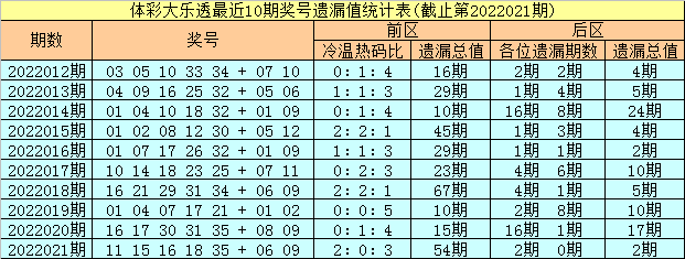 彤彤第2022022期体彩大乐透后区遗漏分析:(定义:后区遗漏0-3期号码为热码,遗漏4-9期号码为温码,遗漏9期的号码以上为冷码)