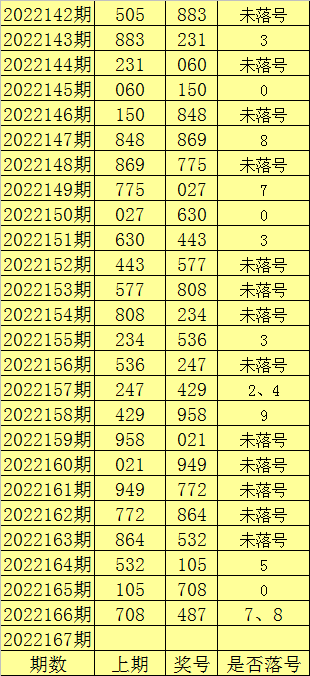 开奖回顾:福彩3D第2022166期奖号开出487。奖号形态开出组六,和值开出19,跨度开出4,奇偶比开出1:2,012路比开出0:2:1,大小比开出2:1。