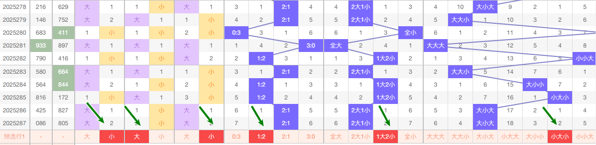 最近的5期当中个位大数出现的频次2次 小数出现3次 ,趋势平和 本期看好继续走大