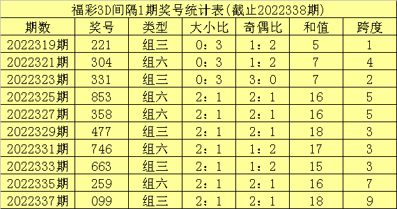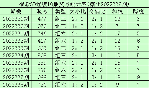 339期李笑岚福彩3D预测奖号:百位十位个位跨度