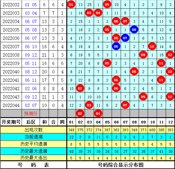 后区分析:最近7周星期一全大出现0期,全小出现2期,一大一小出现5期;全偶出现1期,一奇一偶出现4期,全奇出现2期,本期后区两码参考02和04。