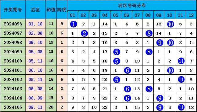 后区走势分析:上期开出奇奇组合:09 11,本期预计开出奇偶组合07 10。