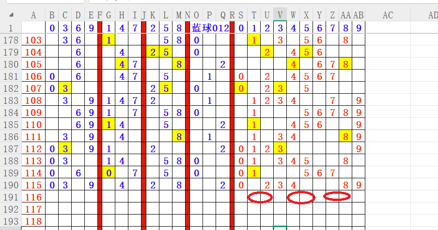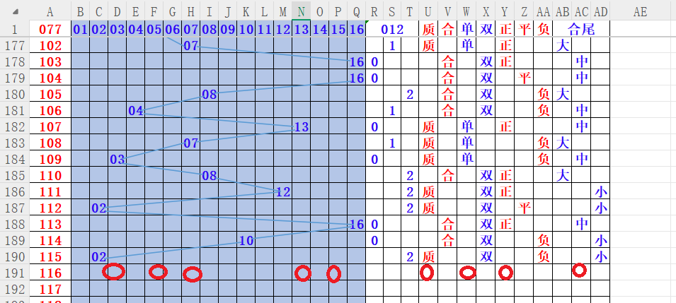 如上图4,012路分析012路,本期重点10路。重点 03 05 07 13 15