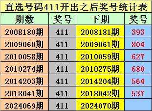 排列三直选411出现之后下期奖号分别为:393-804-627-680-564-537。