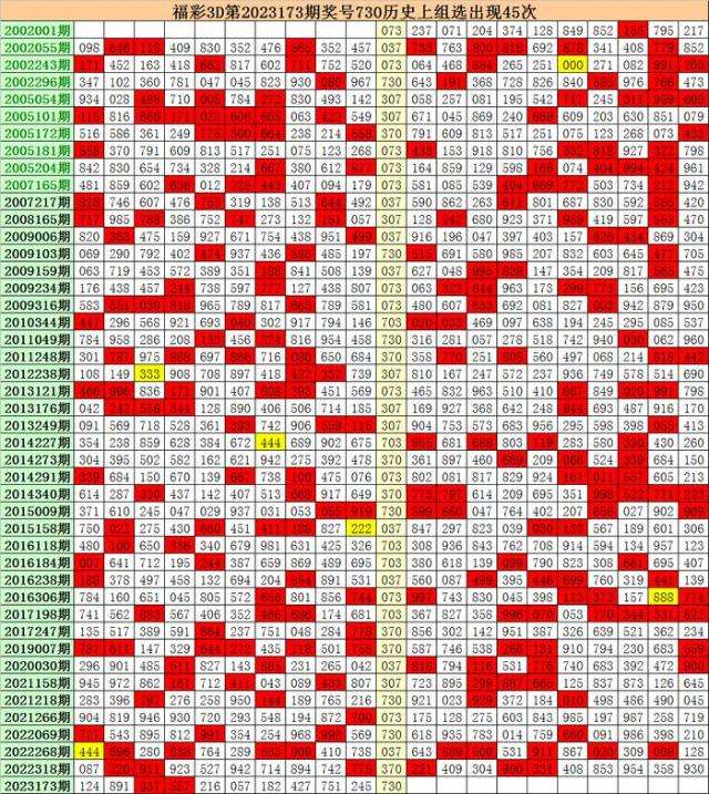 上期回顾:福彩3D第2023173期开出奖号730。