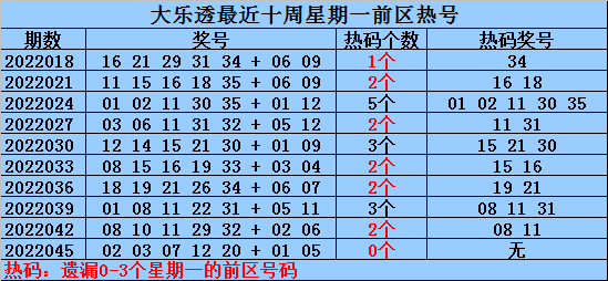 热号:最近十周星期一前区开出22个热号,上周星期一前区开出0个热号,本期预计热号继续火爆,关注号码10 11 12 32。