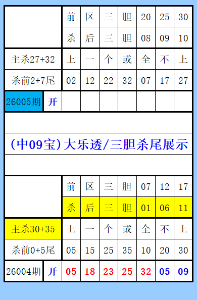 大乐透(中09宝)三胆杀尾展示