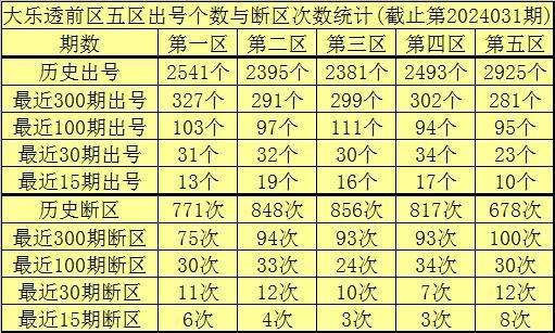 李老头大乐透第2024032期前区五区奖号分析: