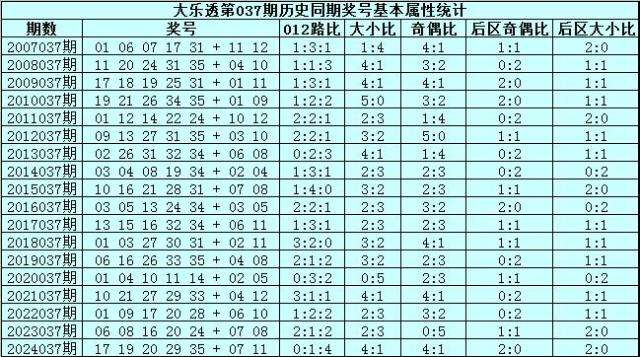 大乐透第2025037期历史同期号码分析:
