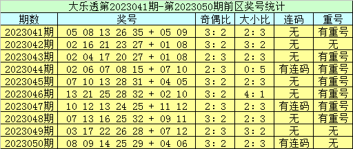 开奖回顾:体彩大乐透第23050期奖号开出:08 09 14 25 29+04 06,前区奖号奇偶比为3:2,012路比为1:1:3,大小比为2:3,包含连码组合:08 09,没有开出重号。