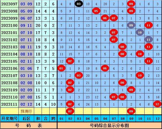 后区分析:上期后区奖号为02+12,开出一大一小组合,上周三后区奖号开出02+09,最近十周三后区奖号大小比为14:6,大号明显较热,本周三看好大号出现,参考一大一小组合,关注两码02、09。