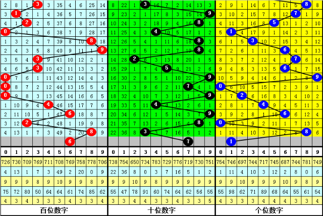 十位分析:前50期出号频次较高的号码为:9开出8次,3开出7次,2、6、8开出6次;出号频次较低的号码为:1开出2次,0、7开出3次。该位号码大小比为27:23,012路比为24:10:16。本期该位排除两码0、1,注意号码4、5、7,精选一码7。