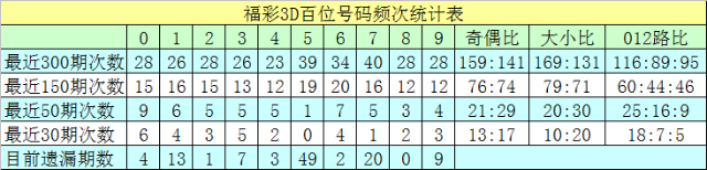 百位分析:最近50期表现较热的号码有:0出现9次,6出现7次,1出现6次;表现较冷的号码有:5出现1次,8出现3次,9出现4次。出号奇偶比为21:29,012路比为25:16:9。本期该位绝杀两码0、4,参考号码2、6、9,精选一码6。