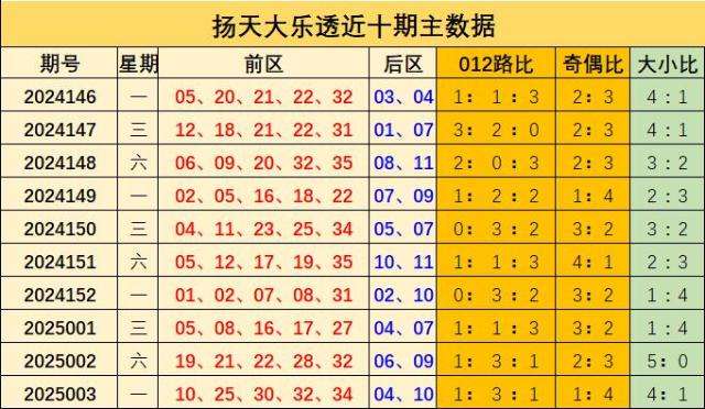 大乐透上期开奖号码为:前区10、25、30、32、34。后区04、10。当期前区号码012路比1:3:1,奇偶比为1:4,大小比4:1。