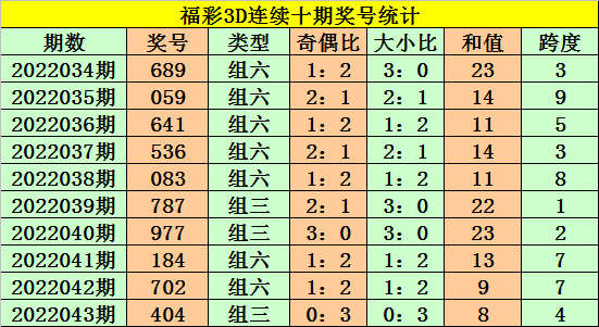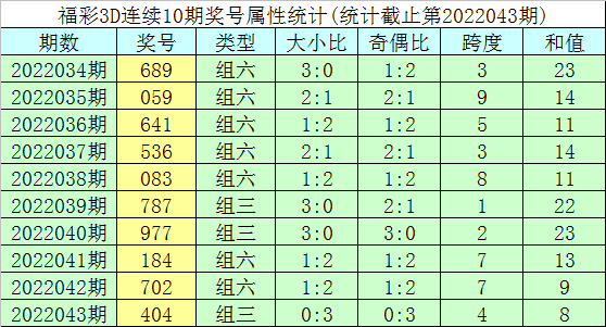 开奖回顾:福彩3D第2022043期奖号为404。奖号形态为组三,大小形态为小小小,奇偶形态为偶偶偶,和值为8,跨度为4。