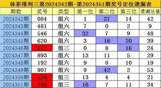 开奖回顾:排列三第2024351期奖号为:788,各位号码遗漏值分别为16、7、11,遗漏总值为34。
